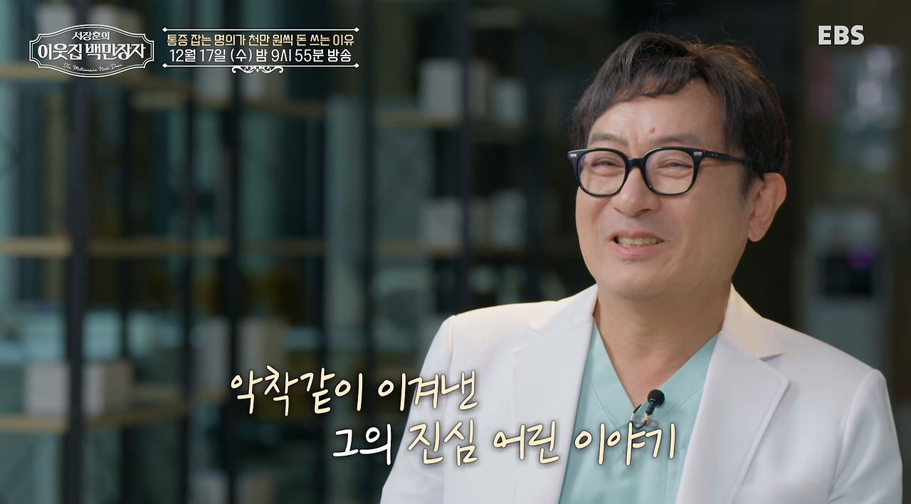 최근에는 서장훈의 이웃집 백만장자에 출연해 의료인으로서의 성공 과정과 개인적 서사를 공개했습니다. 이 프로그램에서는 그의 치료 성과뿐 아니라, 해외 환자들과의 인연, 중동 왕족 진료 사례, 그리고 개인적 시련이었던 해외 체류 시기의 경험이 함께 조명되었습니다. 특히 리비아 체류 중 겪었던 극한의 경험이 이후 의료 철학에 큰 영향을 미쳤다는 고백은 시청자들에게 강한 인상을 남겼습니다.